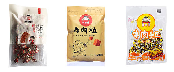 3、牛肉粒食品包裝機設備包裝帶有圖案產品時,自動跟蹤定位色標,圖案完整精美。